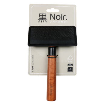 Deze Slicker borstel van Noir Japandi is geschikt voor een goede basisverzorging het hele jaar door. Deze borstel met fijne gebogen pinnetjes wordt voornamelijk gebruikt om de vacht mooi en klitvrij te houden. Borstel jouw viervoeter regelmatig zo hou je de vacht glanzend, gezond en klitvrij. Deze borstel is geschikt voor alle vachttypes. De slicker is gemaakt van roestvrijstalen pinnen en heeft een ergonomische handgreep van FSC-gecertificeerd beukenhout met een donker gebeitste afwerking.